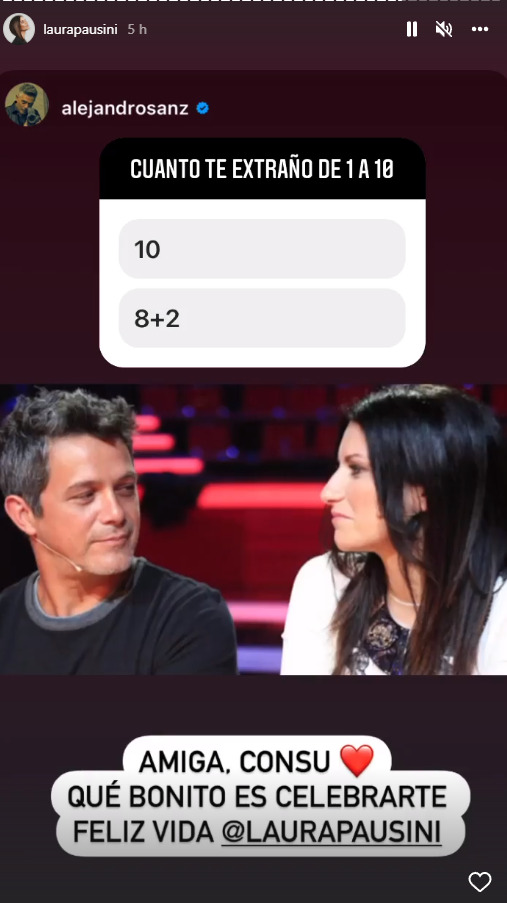 A través de su cuenta de Instagram, la cantante italiana compartió el mensaje que le dejo Sanz.