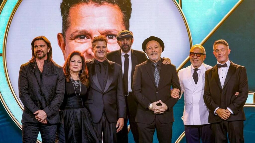 Durante la ceremonia de homenaje al cantante colombiano, aparecían uno a uno en el escenario para interpretar los éxitos de Carlos, quien nunca dejó de sonreír y celebrar que sus amigos estuvieran cantando las canciones que lo han llevado a este feliz momento.