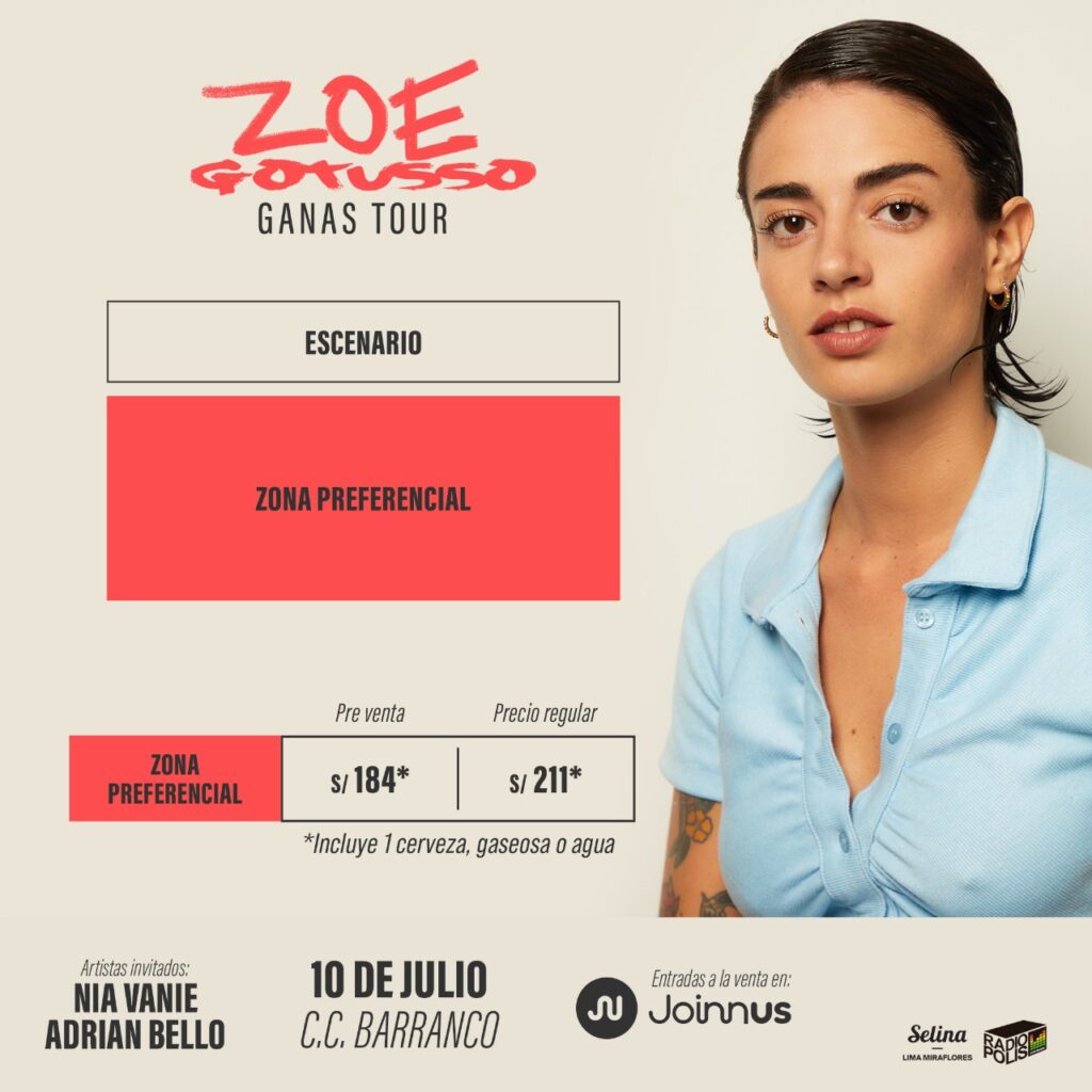 Cabe señalar que este concierto solo tendrá una zona, con capacidad limitada. La idea es que los asistentes puedan tener un conexión especial con Zoe y se lleven la experiencia más importante de sus vidas. Menores de edad pueden ingresar en compañía de un adulto.